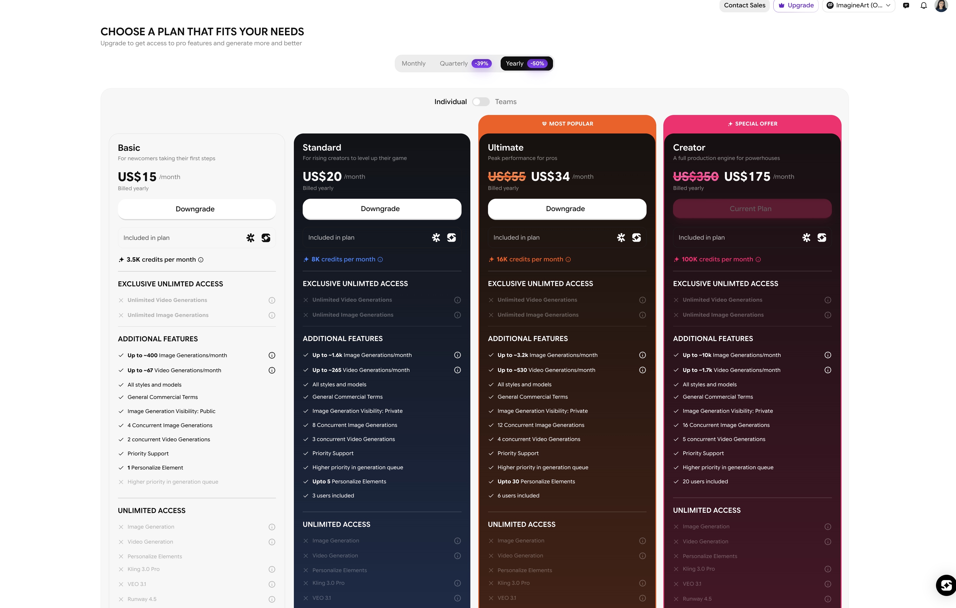 - Built-in creative ecosystem covering image generation, video production, editing, mockups, and workflows