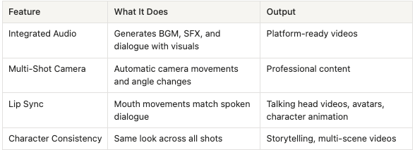 All three audio elements synchronize automatically with the visuals because the AI generates them together. The background music doesn't accidentally clash with the action. Sound effects happen exactly when the corresponding visual action occurs, and dialogue matches the character's lip movements frame by frame.
