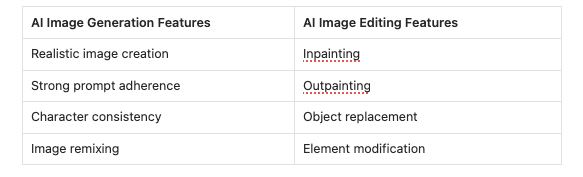 Inpainting allows you to remove unwanted elements or fill specific areas of an image. Outpainting extends images beyond their original boundaries, maintaining style and composition. Object replacement lets you swap specific items while preserving consistent lighting, shadows, and perspective.